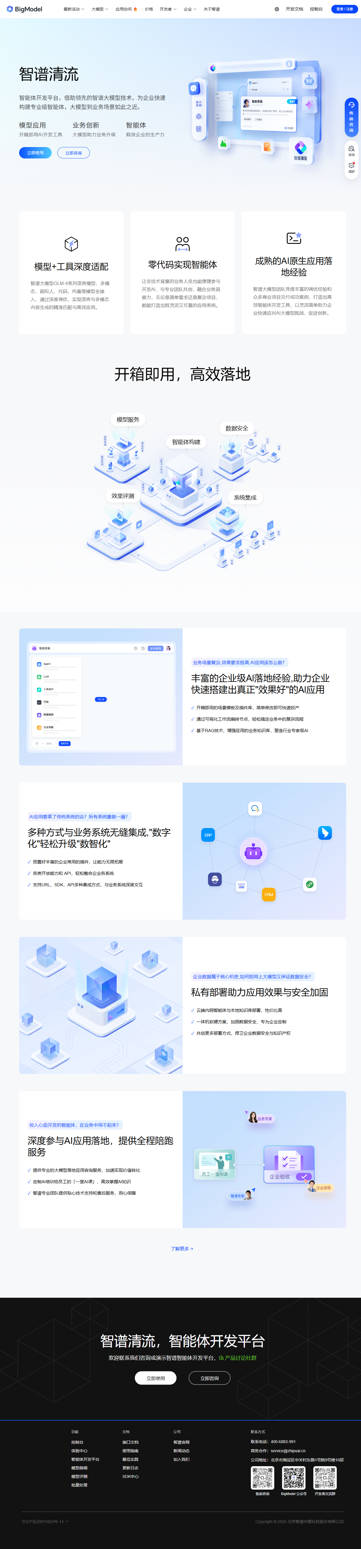 智谱AI于2025年7月上线的“Agent”子站(https://bigmodel.cn/agent)是面向个人与企业的一站式智能体构建与分发中心。平台基于GLM-4系列大模型,提供零代码/低代码开发环境,用户仅需输入一句话描述,即可在30秒内生成可对话、可调用工具、可嵌入网页或微信的智能体。平台同时提供市场、插件、数据闭环与私有部署选项,帮助开发者把AI能力快速转化为生产力。