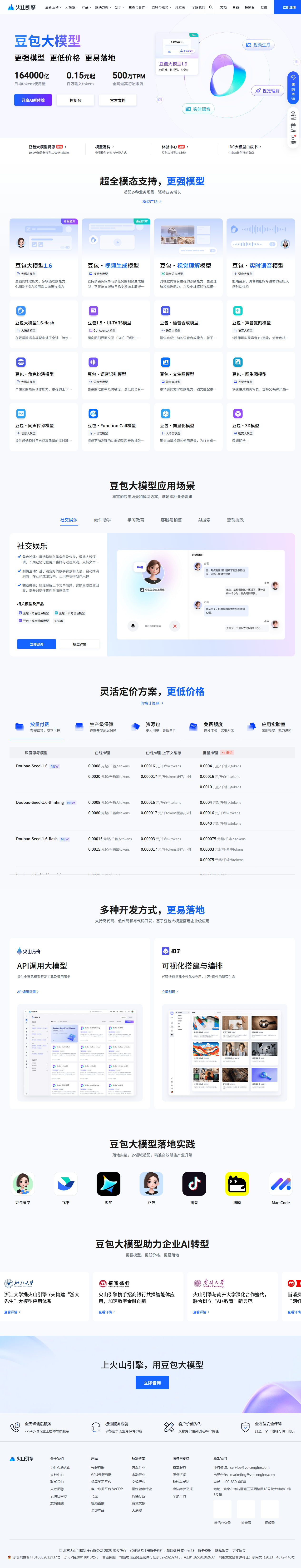 该站点是字节跳动旗下火山引擎「豆包大模型」的官方门户,面向企业与开发者提供大模型API、云端算力及配套工具。页面简洁直观,用户可在线体验文本、语音、视频、音乐等多模态生成能力,并一键开通按量或包年付费,快速将AI嵌入自身业务。