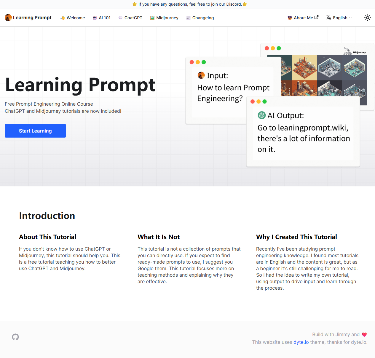 LearningPrompt.wiki 是由国内开发者维护的免费中文Prompt工程学习网站,面向零基础的AI爱好者、产品经理、设计师与开发者。站点以“让每个人都能用好AI”为使命,从ChatGPT到Midjourney、Stable Diffusion,提供由浅入深的图文教程、实战案例与可复制提示词。所有内容开源更新,支持一键跳转官方工具,无需注册即可浏览、复制、分享,被誉为中文圈最友好的Prompt入门手册。