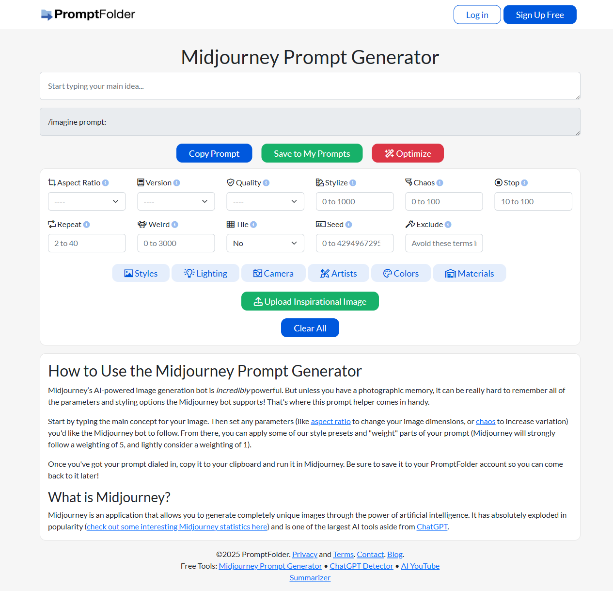 Noonshot MJPrompt 是专为 Midjourney 设计的在线提示词(Prompt)生成器,由 Noonshot 团队开发。它通过可视化界面把复杂参数拆成“点选-拖拽”操作,让零基础用户也能在几秒内写出高质量英文提示。网站实时同步 Midjourney 最新语法,内置 100+ 艺术风格、镜头、灯光、材质、年代等标签,并支持上传参考图自动反推关键词。所有提示一键复制到 Discord 即可出图,极大降低学习门槛。