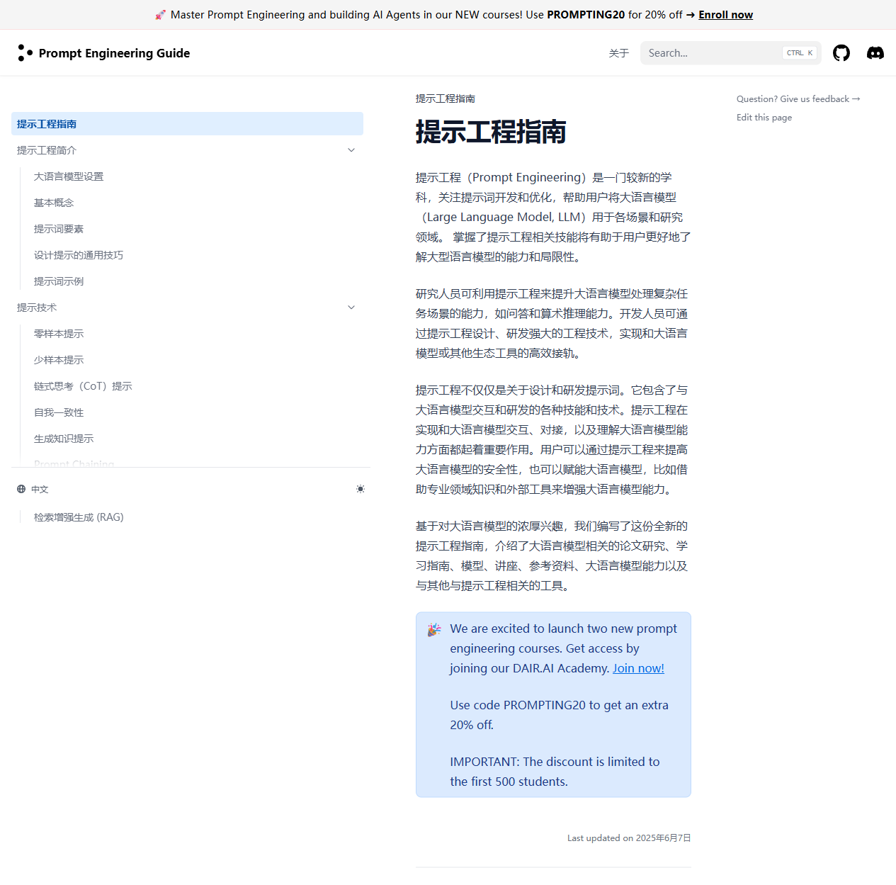 PromptingGuide.ai/zh 是面向中文用户的免费开源提示工程学习平台,由 DAIR 社区维护,围绕 GPT-4、Claude、Gemini 等主流大模型,系统梳理提示设计思路与技巧。内容覆盖基础概念、进阶策略、实例拆解及论文速读,所有章节均可在线阅读或一键下载 PDF/EPUB,并同步 GitHub 更新。无需注册即可浏览,侧边栏目录支持快速跳转,代码块可复制到 Playground 直接运行,帮助零门槛上手。