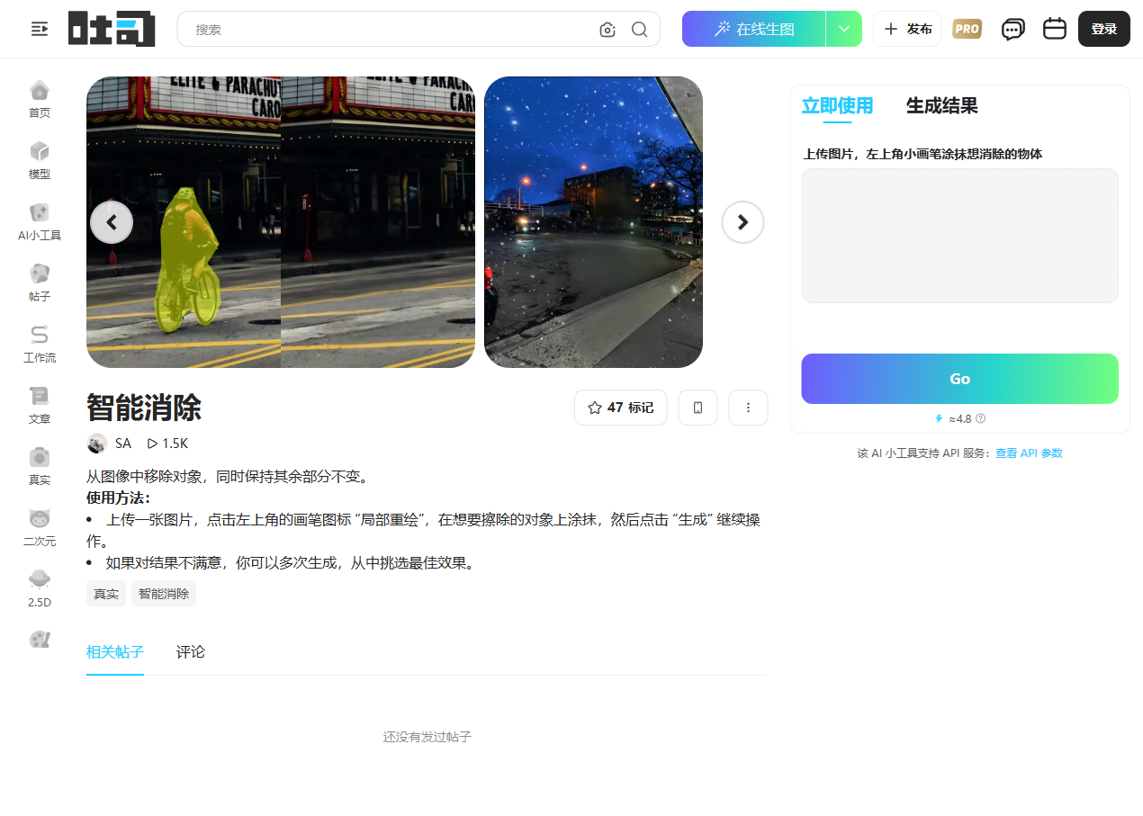 吐司TusiArt模板中心 是面向AI创作者的在线模型社区“吐司TusiArt”旗下的模板子站,主打“一键同款”功能。用户无需安装任何软件,即可在浏览器里直接调用海量Stable Diffusion、SDXL、LoRA及最新混元DiT模型,输入提示词或上传参考图,秒级生成高分辨率图像。模板每日更新,涵盖插画、摄影、国风、二次元、工业设计等数十种风格,并支持ComfyUI工作流、文生动图、在线训练与模型共享。注册即送100点数,每日签到可再领,单图1点,真正零门槛体验AI绘画。
