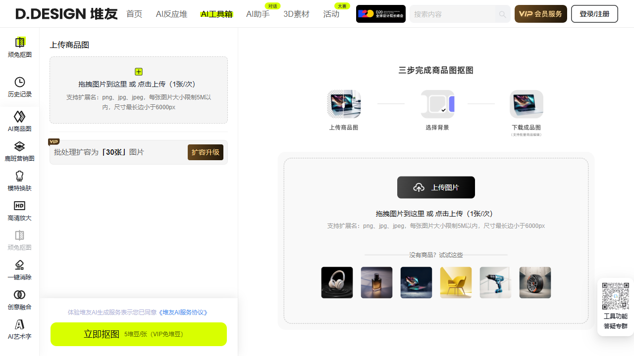 顽兔抠图是阿里巴巴旗下堆友D.design推出的在线智能抠图工具,面向设计师、运营、电商卖家及普通用户。无需安装,浏览器即开即用;依托阿里AI算法,3秒自动识别主体、去除背景,发丝级精度,支持批量处理。抠完可直接换背景、加阴影、改尺寸,适配淘宝主图、海报、证件照等多场景,结果可商用,全程免费。