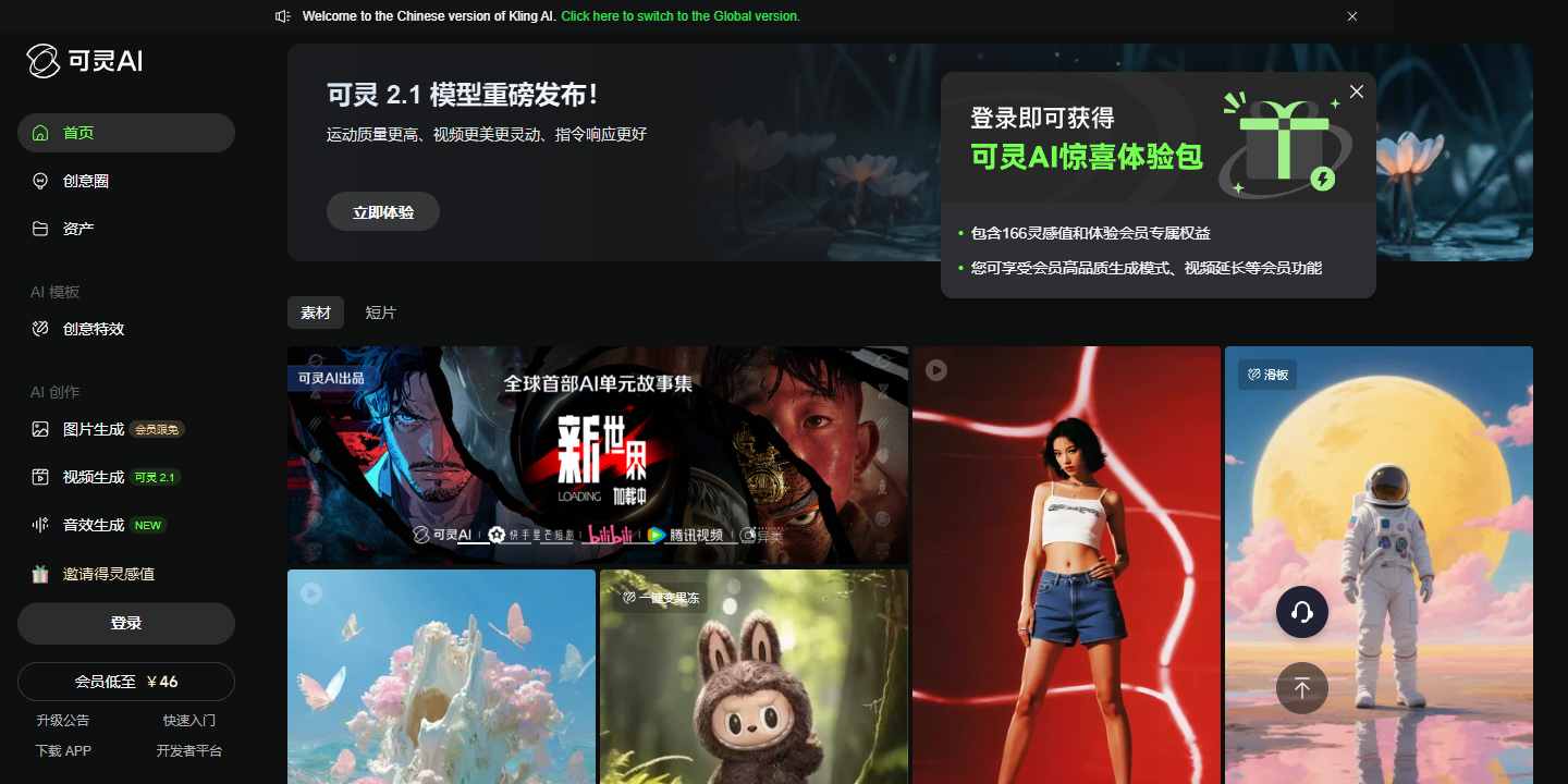Kling AI 是快手旗下「可灵」官方中文站,主打“一句话生成电影级画面”。2024年上线即开放商业付费,2025年7月已迭代至2.0,支持最长3分钟1080P视频、任意比例图片、创意短片、广告分镜、数字人播报等。无需安装软件,浏览器即可创作;内置海量国风、科幻、写实风格模板,社区每日更新热门咒语。注册即送60点数,可生成约30张图或3条5秒视频,付费套餐灵活,学生可享半价。