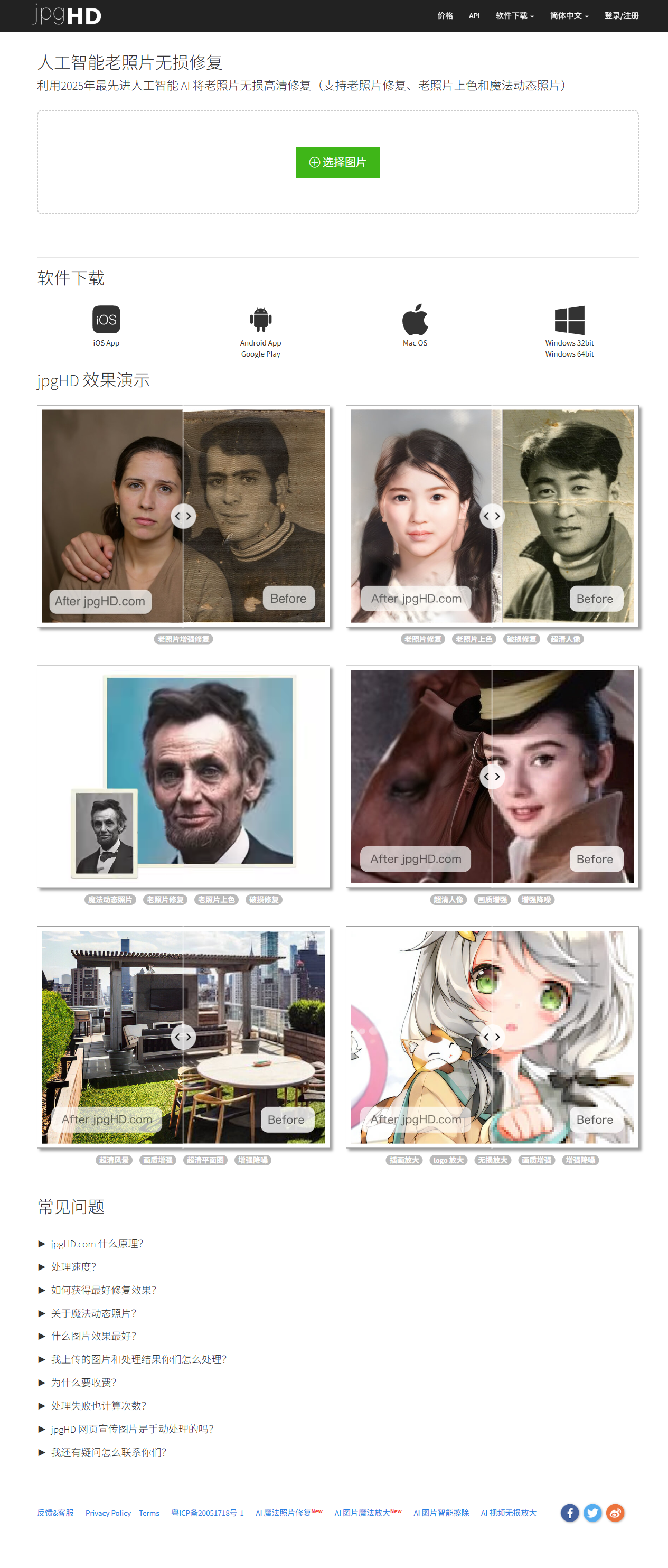 jpgHD.com/zh 是专为中文用户打造的在线 AI 图像修复平台。无需注册与安装,打开网页即可上传 JPG/PNG 等常见格式图片。系统利用 2020 年发布的超分模型与深度学习算法,在数秒内完成去噪、补损、锐化、上色等操作,输出 4K 级无损画质。页面极简,中文指引清晰,新手 3 步即可下载结果,兼顾电脑与手机端体验。