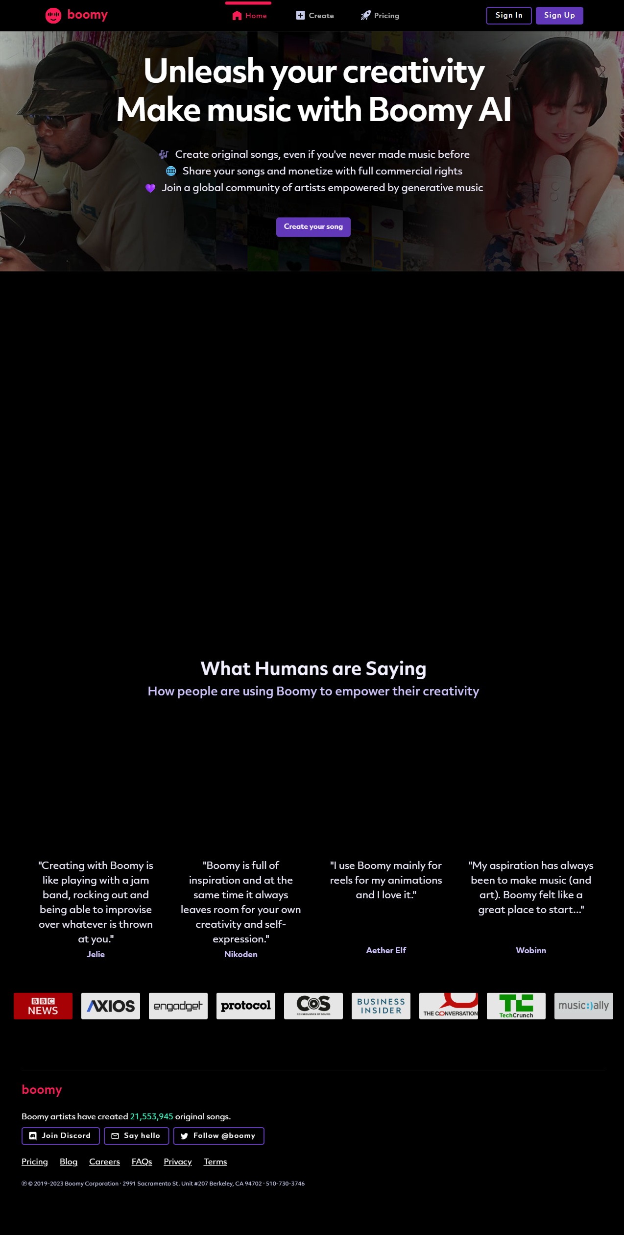Boomy.com 是面向所有人的 AI 音乐生成平台,只需几秒即可创作原创歌曲。平台提供嘻哈、EDM、Lo-fi 等数十种风格模板,用户点击几下即可生成完整作品,并可在线微调旋律、节奏、音色,或重新生成不满意的部分。生成后可立即发布到 Spotify、Apple Music、TikTok 等 40+ 流媒体,作品被点播即可获得版税收入。Boomy 已汇聚 1300 万首 AI 歌曲,占全球录制音乐约 12.85%,并内置全球艺术家社区,方便创作者交流、合作与推广。