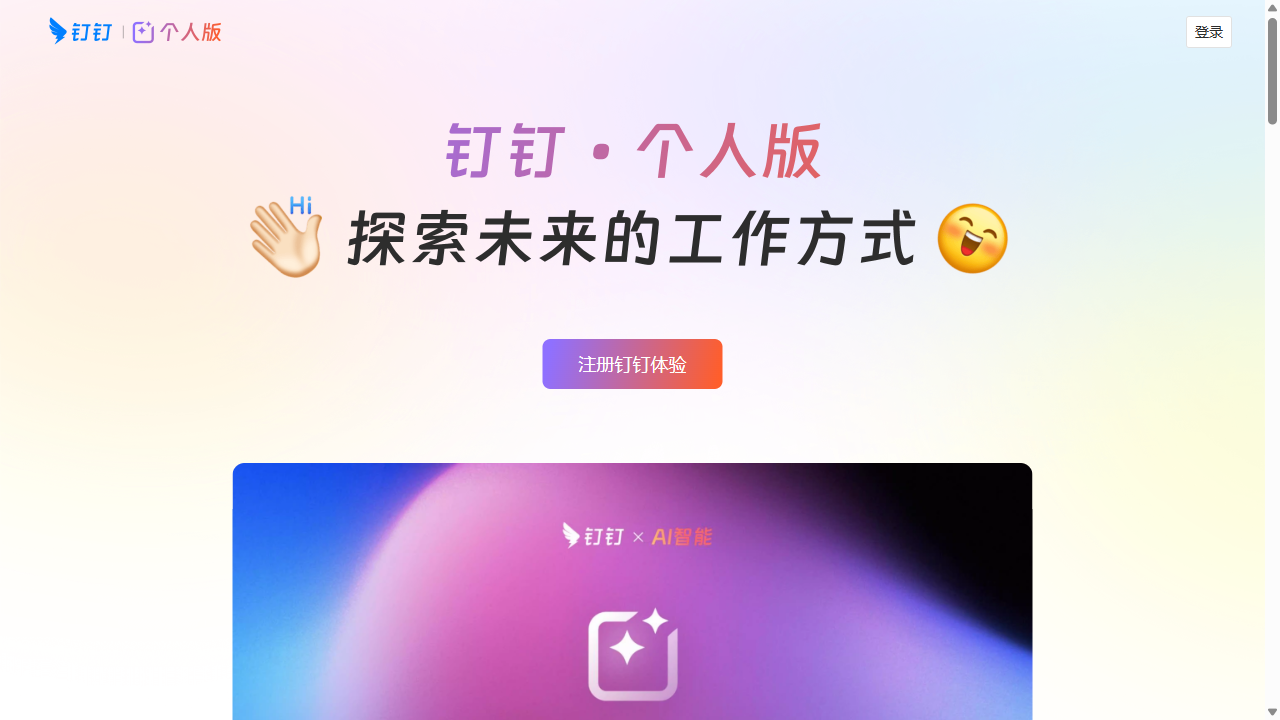 钉钉个人版是阿里推出的“一人公司”级生产力平台,整合空间、AI、阿里云盘、钉钉会议四大模块。用户可在官网 https://workspace.dingtalk.com/welcome 秒过内测,下载客户端后即用。它把企业级能力轻量化,让个人也能拥有知识库、云盘、视频会议和AI助手,真正做到“一个人,一支队伍”。