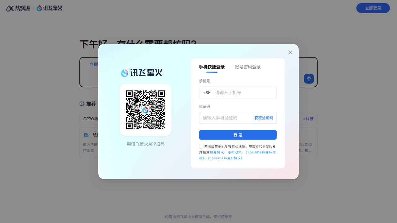 讯飞星火认知大模型官网由科大讯飞官方运营,面向个人与企业开放。首页即可体验星火V4.0,无需注册即可对话,注册后解锁API、插件、智能体商店等全部能力。页面简洁,顶部导航分“体验中心、API文档、智能体、下载中心、企业方案”,左侧提供历史会话、文件库与模板市场。支持微信、手机号一键登录,帮助文档与社区论坛随时可查。