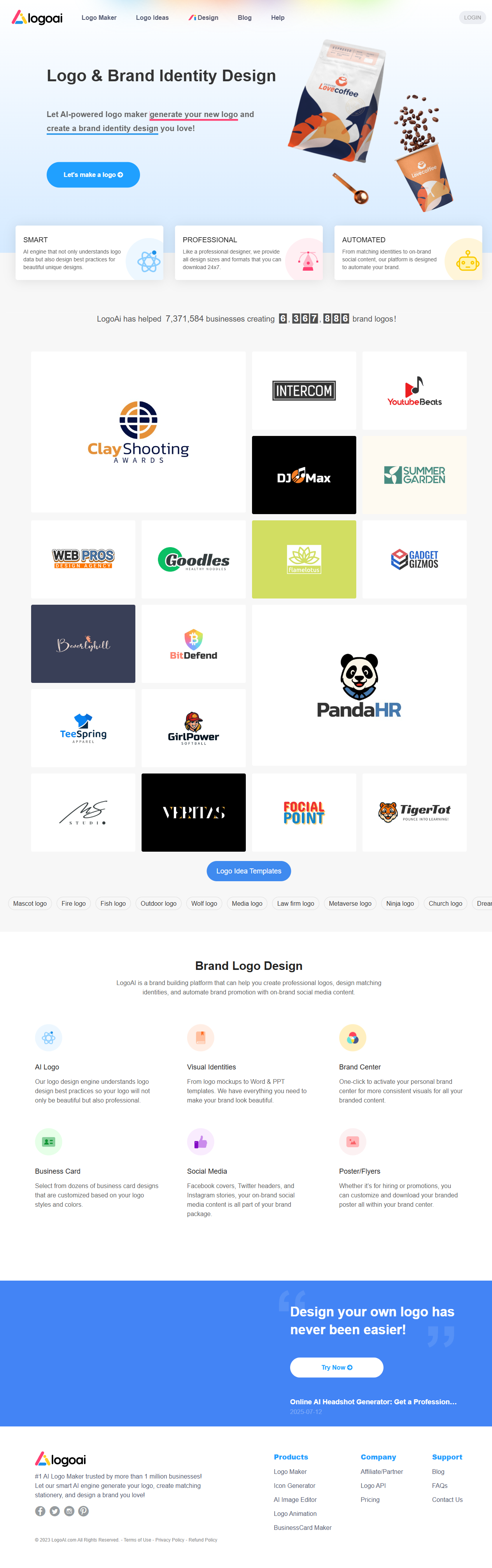 LogoAI.com 是一个面向全球创业者的在线品牌视觉创建平台,核心引擎采用深度学习算法,能在数秒内将品牌名称与行业属性转化为多套原创LOGO方案。平台内置数百万图标、字体与配色组合,支持矢量、PNG、PDF、反白、透明背景等10余种专业格式输出,并提供名片、社媒封面、VI手册等延展设计,真正实现“一站式品牌起步”。无需安装软件,浏览器即可完成从灵感、编辑到下载的全流程,已服务超过500万用户,覆盖电商、餐饮、科技等30余个行业。
