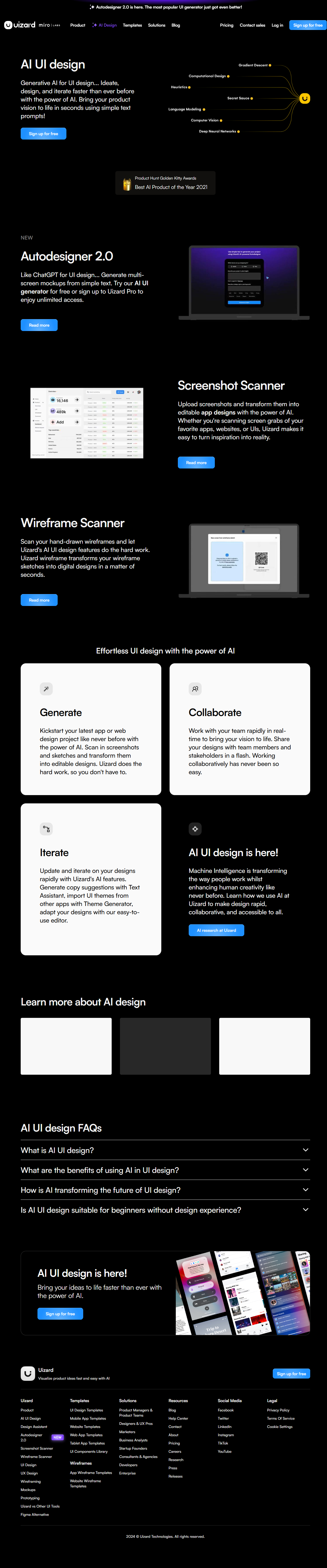 Uizard AI Design 是 Uizard 推出的智能界面设计子站,面向产品经理、创业者、设计师与开发者。用户只需用自然语言描述需求,系统即可秒级生成多屏高保真原型,并支持即时拖拽修改、多人实时协作。平台内置数千套移动端、Web、平板模板与组件,覆盖金融、电商、教育、医疗等主流行业。设计完成后可一键导出 HTML/CSS/React 代码,无缝衔接开发流程。免费试用+多档付费方案,让个人与团队都能零门槛体验 AI 带来的设计效率革命。