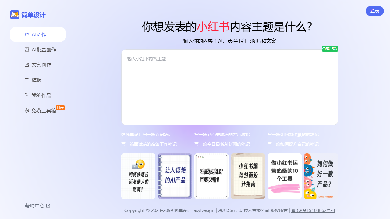 简单设计(jiandan.link)是一款无需注册、打开浏览器即可使用的「零门槛」在线设计平台。它面向不会 PS 的普通人,把海报、封面、简历、电商主图等常见设计需求拆成模板与组件,拖拉替换文字图片就能出图;同时内置压缩、裁剪、格式转换、抠图、加水印等轻量图片处理工具,一站式解决“做图+改图”问题。网站界面极简,左侧模板中心、中间画布、右侧属性栏,5 分钟可上手,成品可导出 PNG/JPG/PDF/SVG,支持一键生成 1:1~9:16 等多尺寸,适配微信、抖音、淘宝、小红书、公众号等主流场景。