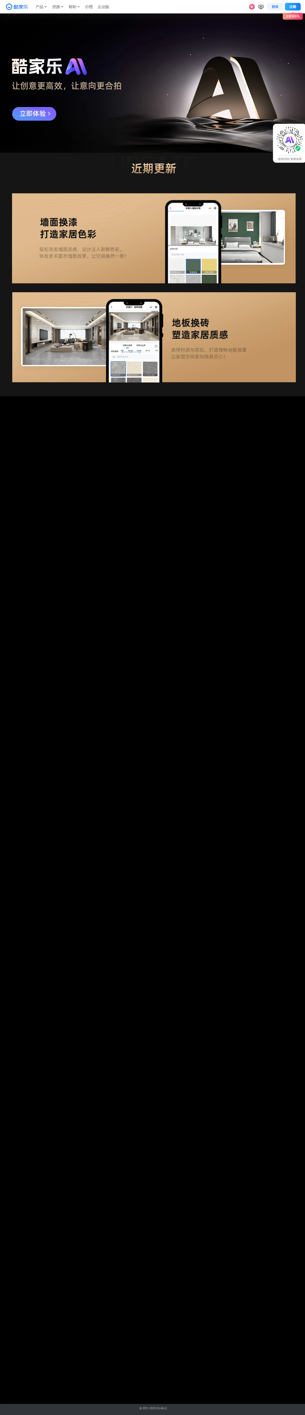 酷家乐AI专区是酷家乐旗下聚焦人工智能设计的官方活动页,面向设计师、装企、地产商及普通业主,提供“零门槛、秒出图、可商用”的AI装修渲染服务。平台整合了酷家乐十年沉淀的1500万真实商品模型与中国户型大数据,用户仅需上传毛坯照片或简单户型图,即可在10秒内生成4K级真实光影效果图,并支持风格、材质、灯光等多维度参数化调整,真正实现“所想即所见”的极速设计体验。