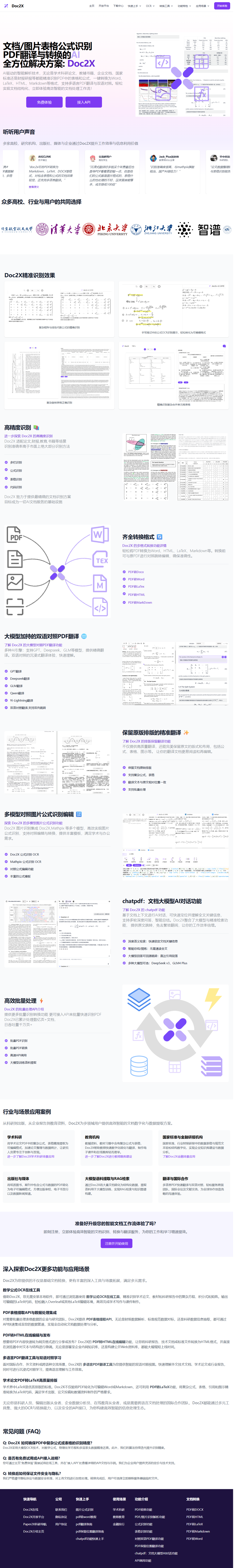 Doc2X(noedgeai.com)是一款专注“文档→可编辑格式”的在线AI工具,由无界AI团队2024年推出。它通过自研OCR+大模型算法,把PDF、扫描图片、CAJ等文件秒级转换为Word、LaTeX、Markdown、HTML、PPT等格式,并完整保留公式、表格、图文排版。无需安装,浏览器或微信小程序即用;注册即送每日20页免费额度,教育、科研、职场用户零门槛体验。