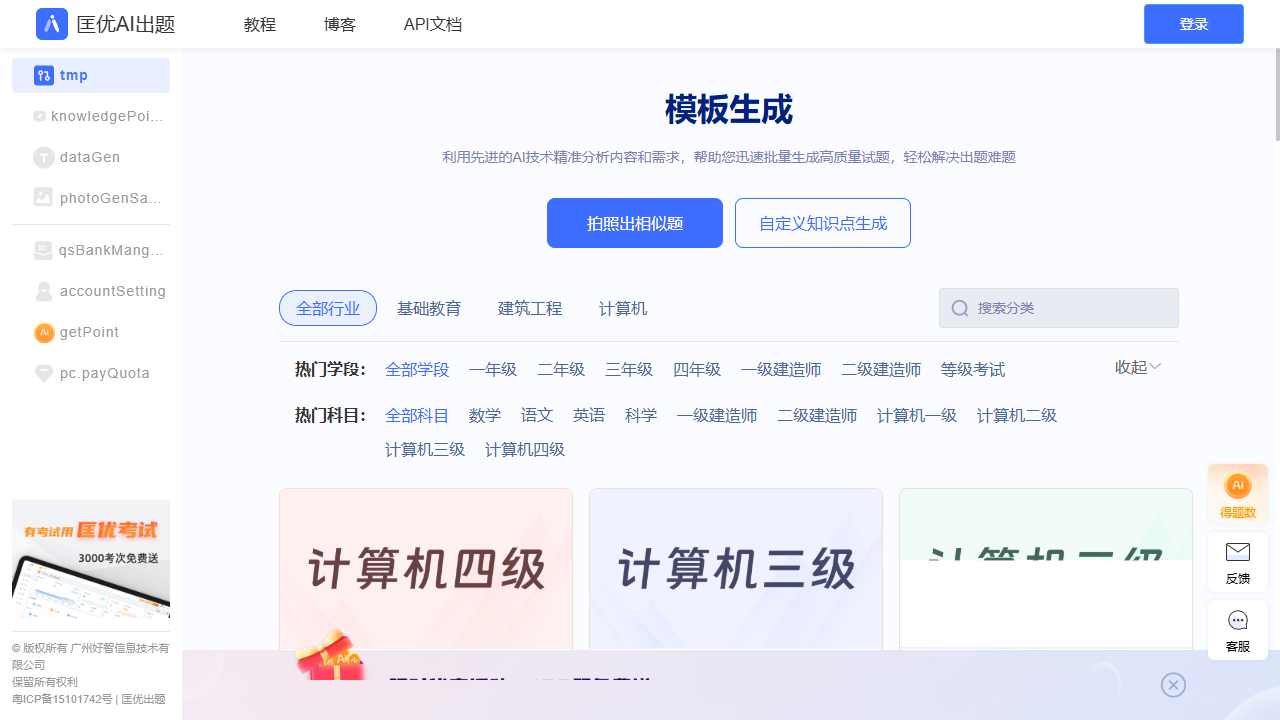 AI出题、模板生成、资料生成、Word导出、题库管理、30秒出卷、教育效率