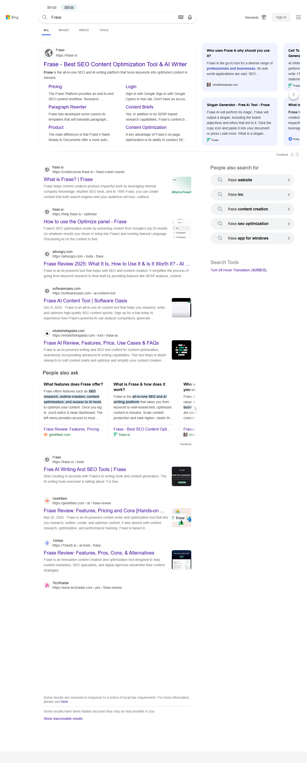 Frase.io 是 2017 年诞生于波士顿的 SaaS 平台,定位“一体化 SEO 与 AI 写作工作站”。它通过实时抓取并解析 Google SERP 前 20 条结果,把关键词研究、竞品差距、内容大纲、SEO 评分和 AI 写作整合在同一界面,帮助用户把“搜索意图”快速转化为可直接发布的优化文章。目前支持 20 余种语言,服务全球 3 万多个内容、SEO 与营销团队,并与 Google Docs、WordPress、Slack、Zapier 无缝集成。