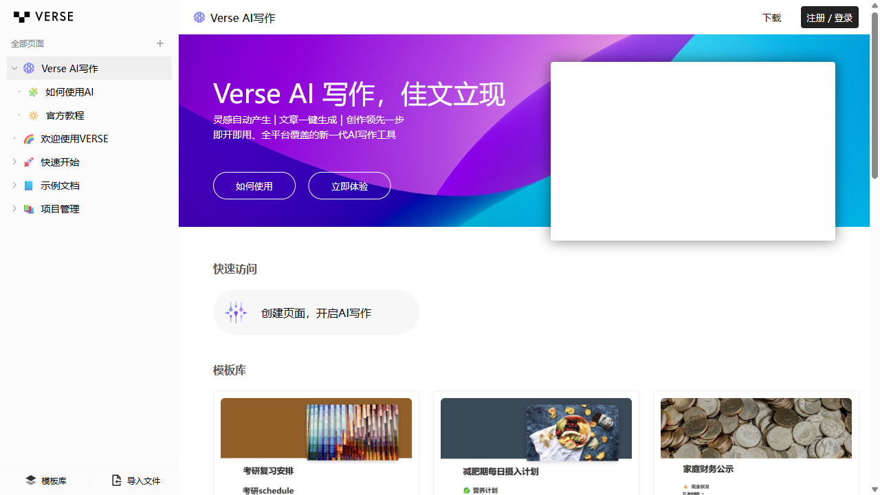 Verse是印象笔记团队推出的新一代AI生产力平台,集模块化文档、知识库与云大脑于一体。它继承印象笔记十余年安全高效的技术架构,接入「印象AI」能力,提供即开即用、全平台覆盖的写作与协作体验。用户可将碎片信息一键转化为结构化内容,实现个人创作与团队知识资产的持续复利。