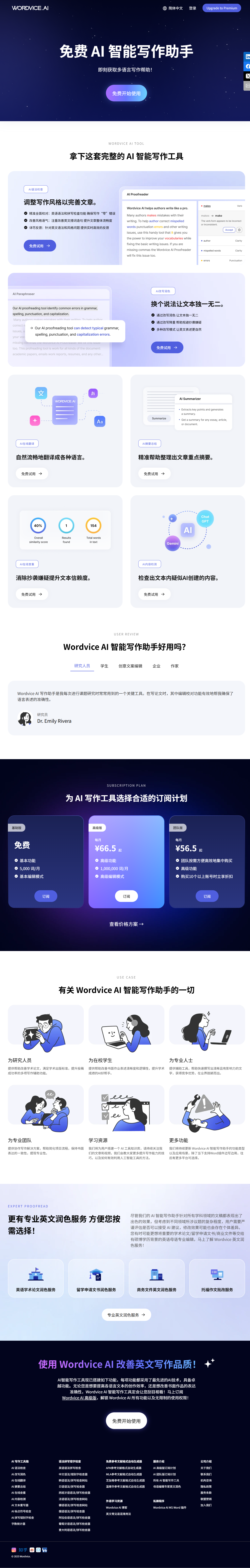 Wordvice AI 是 Wordvice 公司推出的在线 AI 写作平台,专注提升英文写作质量。平台集成语法检查、改写润色、摘要、翻译、查重、AI 内容检测等六大工具,支持 APA/MLA 等格式,面向学术、商务、留学申请等多场景。用户可通过网页或 Word 插件即时获得 AI 反馈,也可升级人工母语编辑服务。界面简洁,免费版即用,付费解锁高级模式与团队协作,已服务全球 14 万+用户。