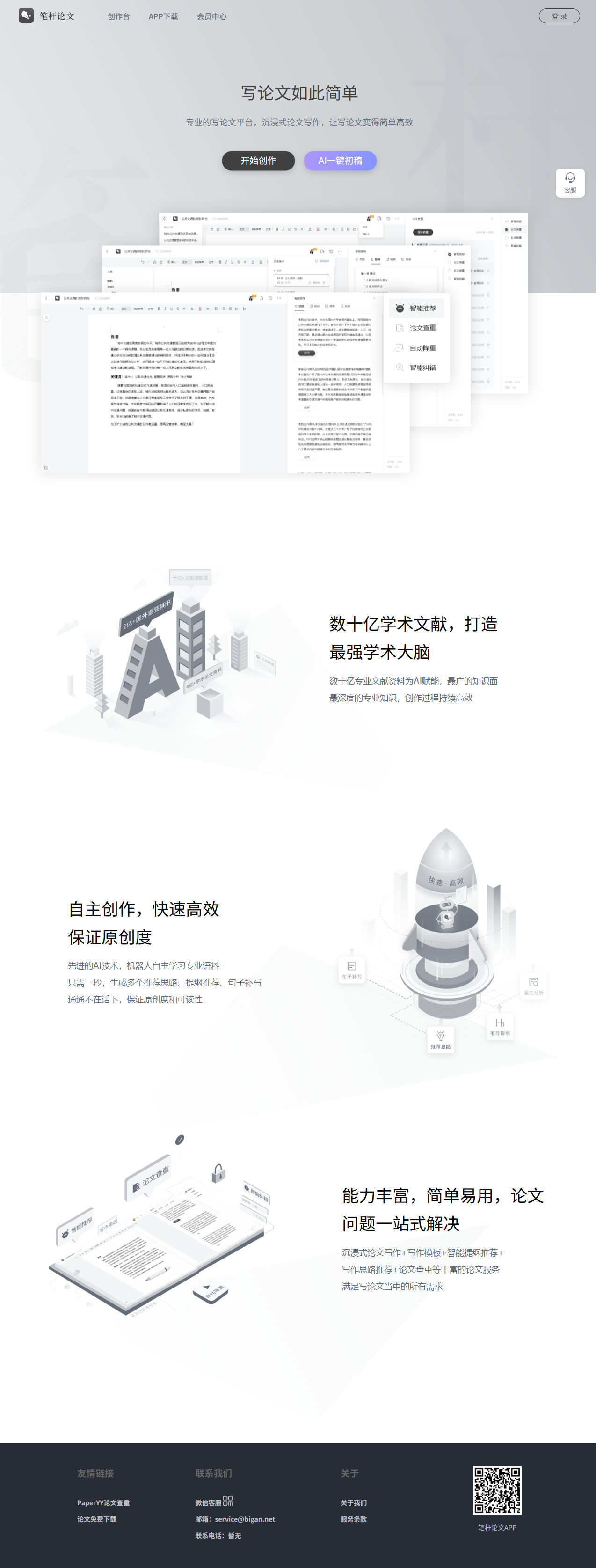 笔杆网(write.bigan.net)是北京智诚策论科技有限公司运营的在线学术写作平台,依托15亿引文、5亿元数据及400亿比对指纹库,覆盖图书、期刊、学位论文等全类型文献,为学生、教师、科研人员提供从选题、资料搜集、提纲推荐、在线写作、参考文献格式化到论文查重、排版、AIGC检测的全流程服务,支持PC与移动端,云端实时同步,保障数据安全。