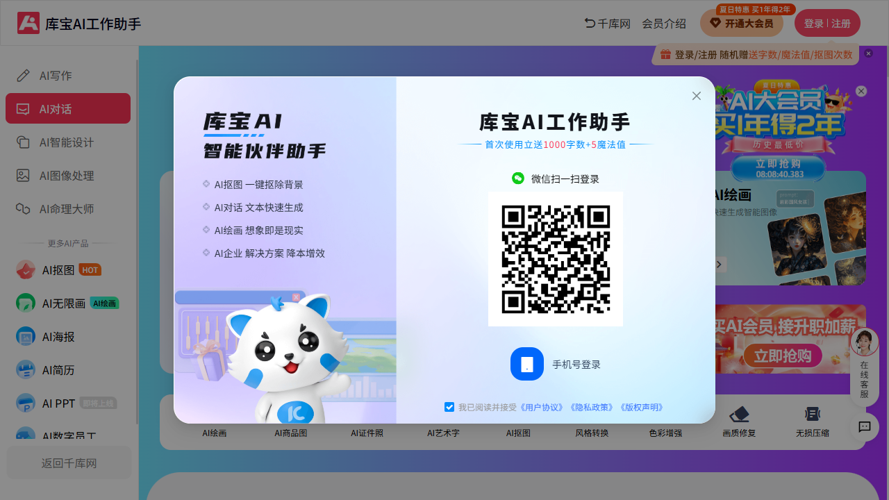 | AI 对话 | 多轮问答、头脑风暴、资料整理、翻译、润色 | 实时交互式答案与创意 |