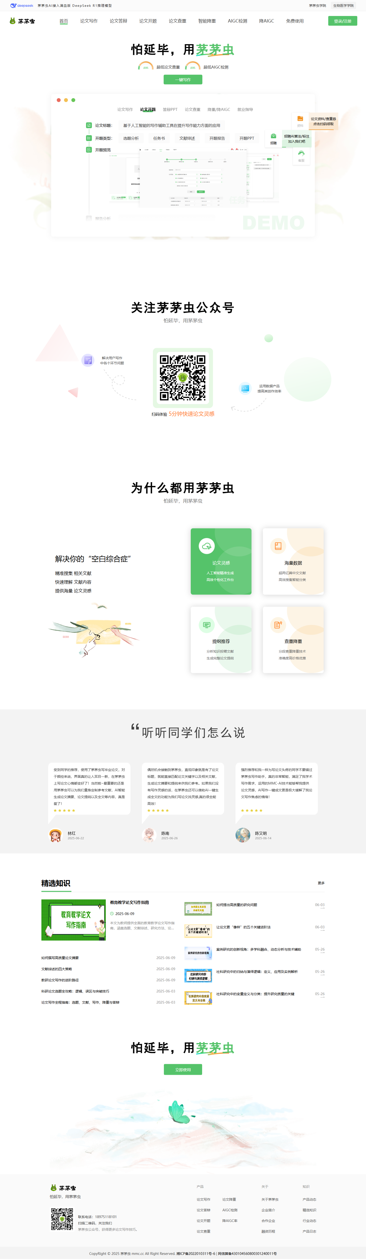 茅茅虫(mmc.cc)是面向中文用户的AI学术写作平台,整合DeepSeek R1模型与区块链时间戳技术,提供从选题、写作、查重到答辩的全流程支持。平台依托5亿+论文数据库,可一键生成提纲、摘要及初稿,实时分段查重并AI降重,同时生成答辩PPT,保障数据安全与原创性,尤其适合高校学生与科研人员。