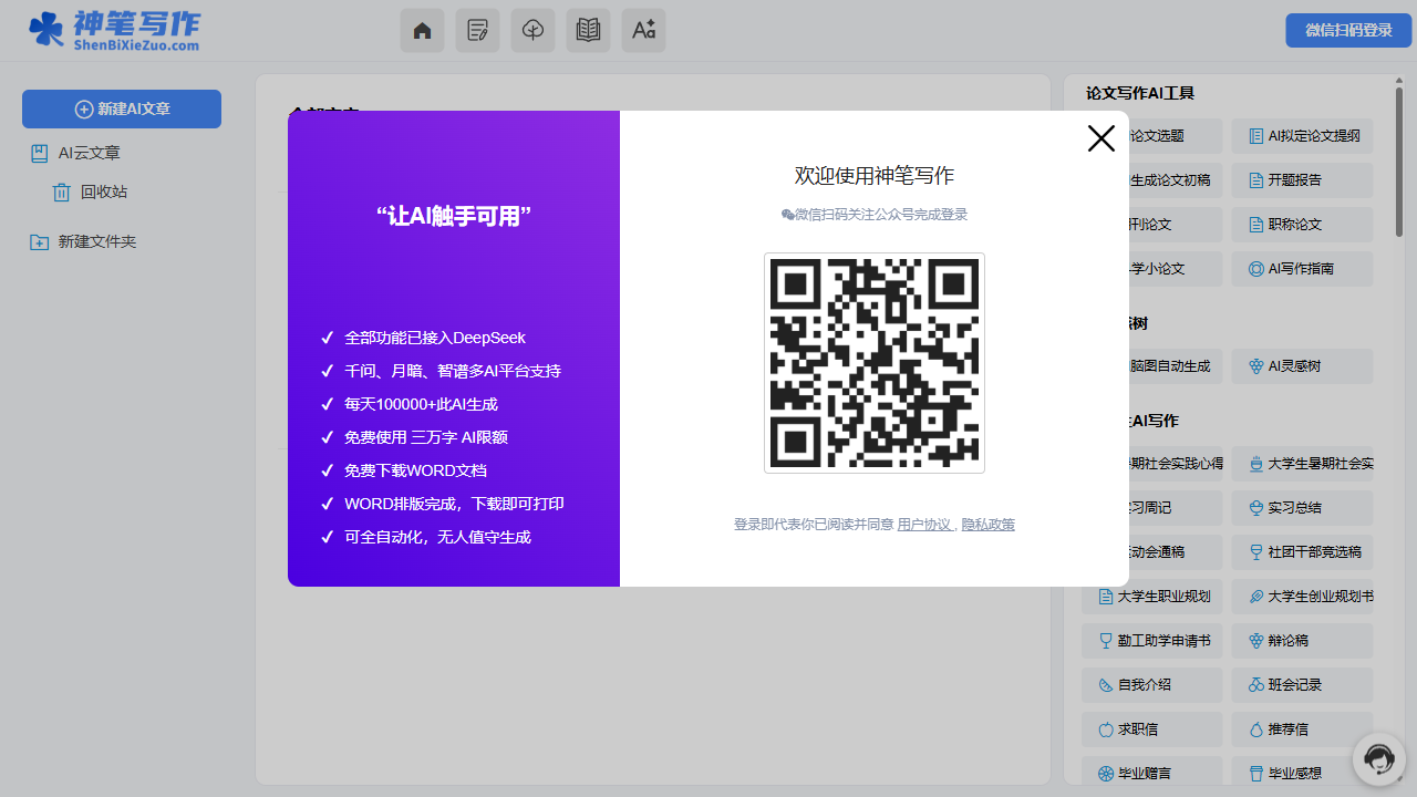 申笔写作(shenbixiezuo.com)是一个面向教师、学生及职场人的AI写作与科研辅助平台。它聚合了500+国内外AI工具入口,提供一键文章生成、论文文献邮箱直送、智能改写、PPT/代码/邮件等场景写作,并每日更新AI资讯与教程,帮助用户“零门槛”完成教学、科研、办公内容生产。