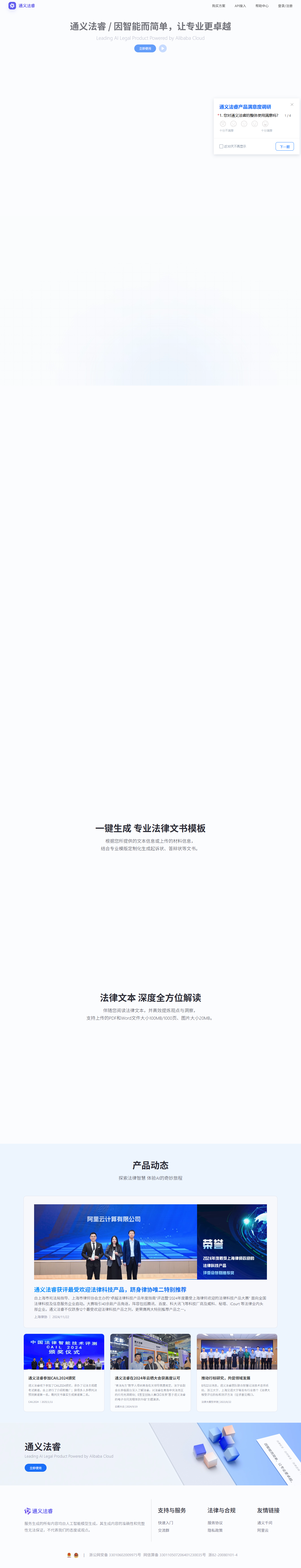 通义法睿(https://tongyi.aliyun.com/farui)是阿里云推出的生成式 AI 法律平台,面向律师、法务、企业及个人,提供 7×24 小时在线法律问答、合同/诉讼文书智能起草、案情分析与判例检索、风险点提示、条款自动审阅等服务。平台基于通义大模型与海量法规、裁判文书、合同库训练,支持自然语言交互,可一键生成专业级法律文书并给出可解释的法条依据,降低法律门槛。