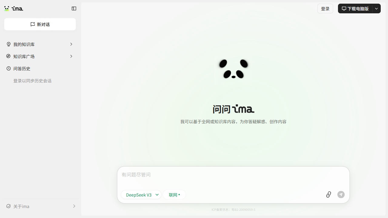 IMA是腾讯推出的跨端AI工作台,用微信扫码即可登录。官网提供Windows/Mac客户端、微信小程序、网页版三端入口,注册即得1 GB免费空间。用户把PDF、Word、图片或网页链接拖进客户端,DeepSeek大模型自动解析、摘要、建索引;随后可用自然语言在知识库内精准搜索,也能让AI继续写作、生成脑图、做PPT大纲。个人库可私密,也可生成链接邀请同事共建;官方还开放法律、行研等共享库供“白嫖”。所有资料云端同步,电脑写方案、手机地铁里都能查。