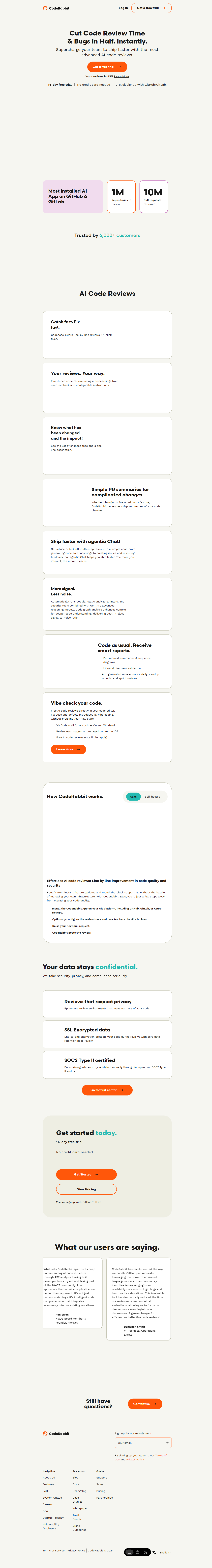 CodeRabbit.ai 是一款面向开发团队的云端 AI 代码审查工具。它通过 GPT-4 级大模型对 GitHub/GitLab 的 Pull Request 进行逐行语义分析,自动生成可落地的修复建议、安全告警与重构提示,并支持在 PR 内直接对话式追问。平台零配置即可接入现有 CI/CD 流程,帮助个人开发者到大型企业显著减少人工审查时间、统一代码风格、提升软件质量。