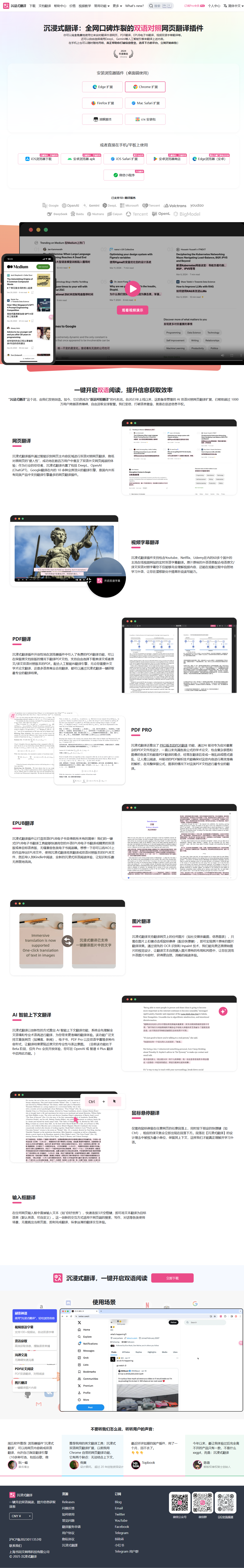 沉浸式翻译官网是「Immersive Translate」插件的官方中文站,致力于用 AI 打破语言壁垒。它提供浏览器扩展、手机 APP、油猴脚本等多形态产品,支持 Chrome、Edge、Safari、Firefox、iOS、Android 等全平台。官网首页即可一键安装,并配有详细图文教程、常见问题、Pro 会员入口及开发者文档。用户无需注册即可免费使用谷歌、微软等引擎,注册后可自选 OpenAI、DeepL、Gemini 等十余种高级引擎,享受 PDF/Epub 双语对照、漫画实时 OCR、会议字幕、输入框增强等特色功能,让外文阅读、购物、学习、办公像母语一样自然。