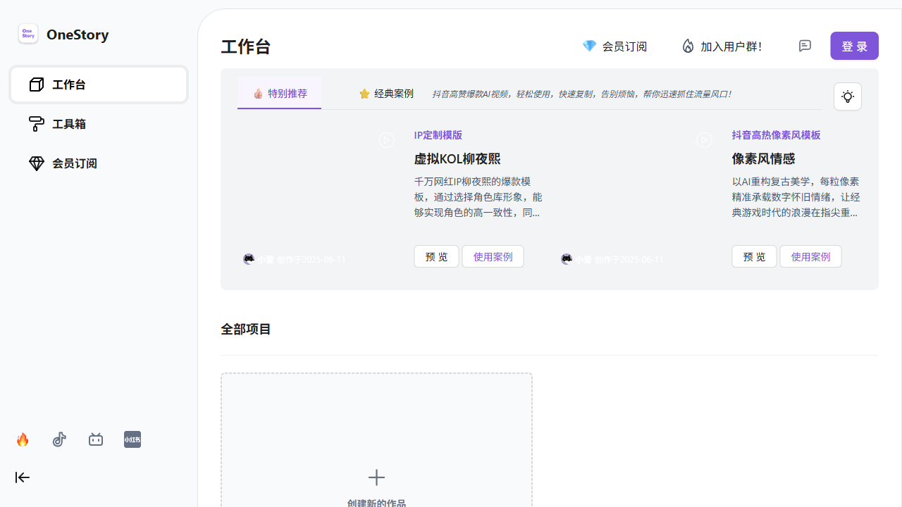 OneStory.Art 是面向零美术基础创作者的一站式 AI 影视前期工具。用户只需输入文字剧本,系统即可在 5 分钟内自动生成角色设定、分镜脚本、连续图像乃至动画短片。平台依托自研大模型与影视级素材库,确保角色一致性、镜头专业度与视觉冲击力,让独立作者、教师、游戏策划、广告人都能像导演一样高效完成前期创作,彻底告别手绘分镜与高昂预算。