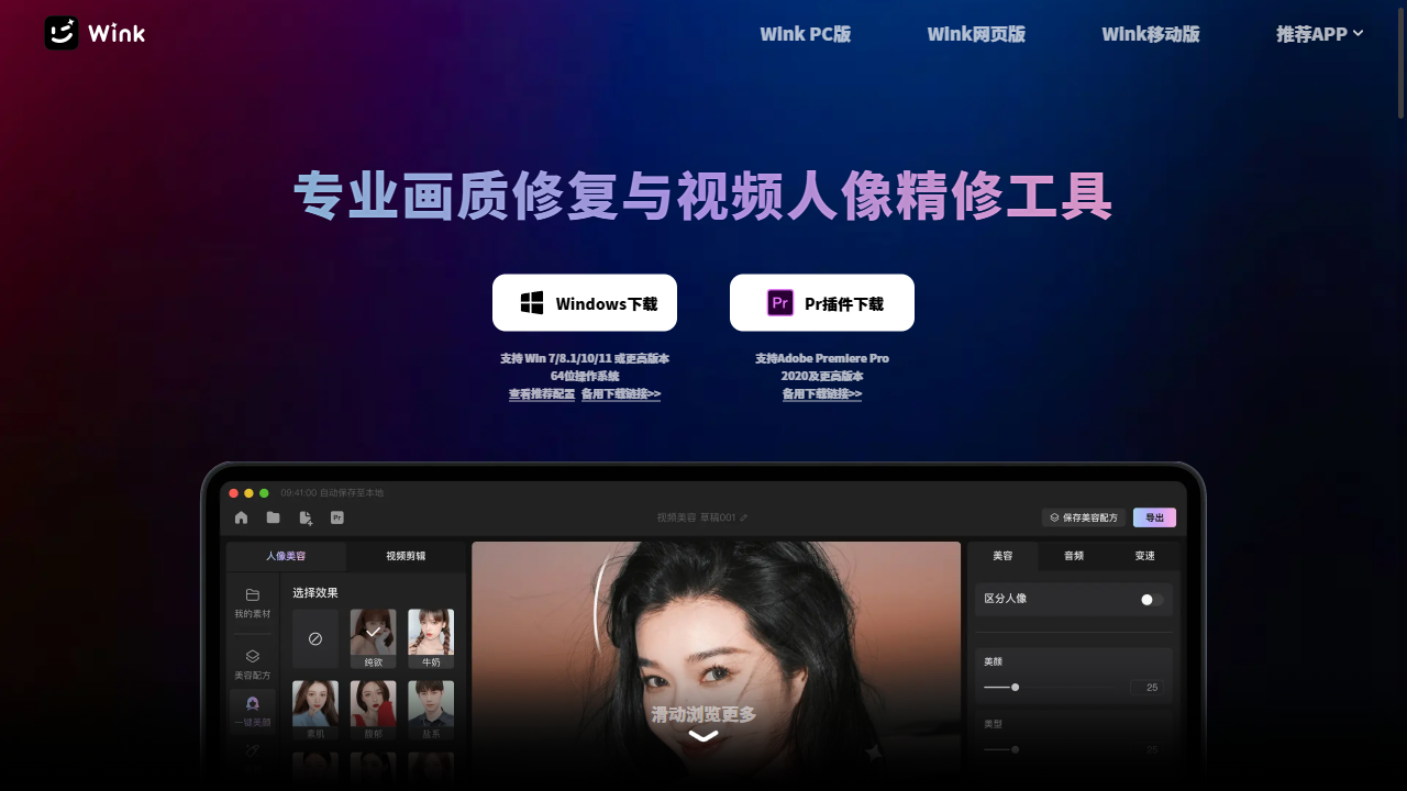 美图Wink官网是美图公司旗下“Wink”系列产品的官方门户,主打“像修图一样修视频”。页面简洁,提供iOS、Android及Windows多版本下载入口,实时展示最新功能、模板与会员权益,并配套教程与客服支持。用户无需跳转即可在线预览效果、领取限时素材包,快速完成从下载到分享的闭环。