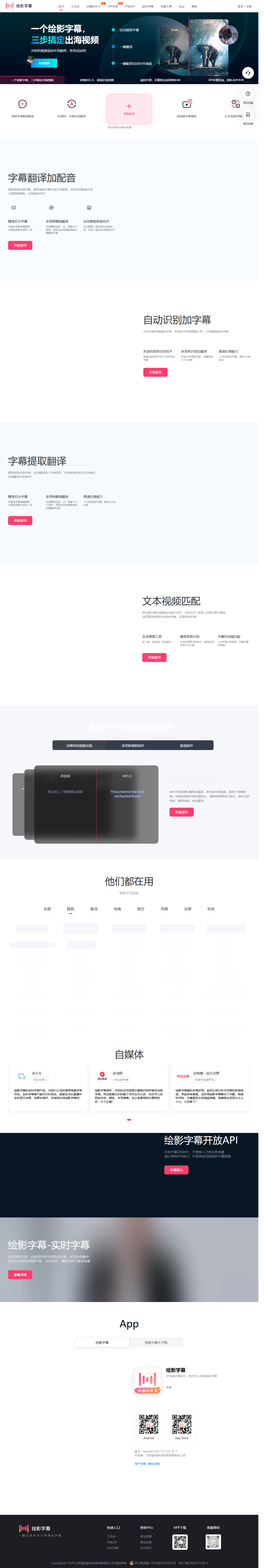 绘影字幕是面向中文视频创作者的在线字幕平台,由AI语音识别与翻译引擎驱动。用户上传视频或音频后,系统自动生成时间轴精准的中英双语字幕,支持SRT、ASS、PR工程等格式导出。网站集成在线字幕编辑器,可批量修改样式、字体、特效,并提供云端协作、版本管理、版权音乐与模板商城。教育、自媒体、企业培训、跨境电商等多领域用户均可通过网页或小程序快速完成从“听写”到“成片”的全流程,显著缩短后期周期。