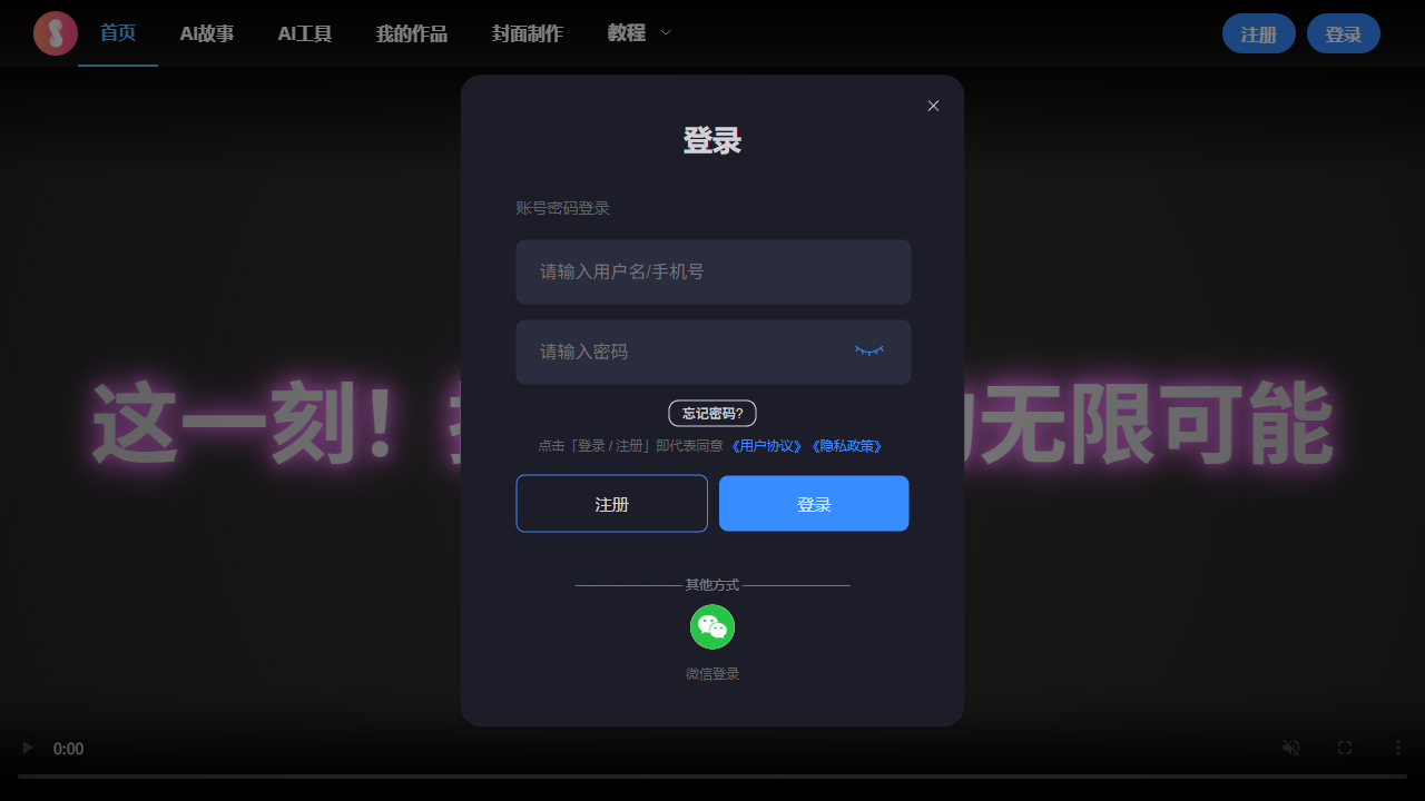 | 文生图 / 图生图 / 文生视频 / 图生视频 | 静态插图、动态漫、连续短片均可生成;支持上传参考图控制构图。 |
