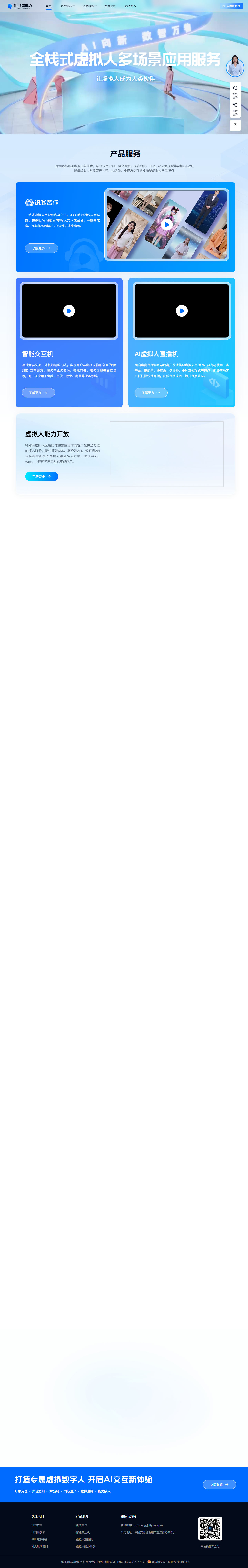 讯飞虚拟人平台依托讯飞星火大模型,提供2D/3D数字人形象、声音复刻、文本驱动视频合成等一站式AIGC服务。用户无需专业设备,只需输入文字或音频,即可在3分钟内生成可播出的虚拟人音视频内容,并可通过SDK/API/私有化部署快速集成到APP、小程序、H5、直播间等终端,帮助媒体、教育、金融、电商等行业降本增效。
